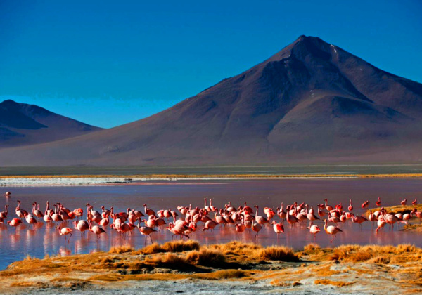 Desayunamos a las 6:30 am, iniciamos visitando el árbol de piedra figura natural de piedra, luego la laguna colorada, principal centro de anidación de tres especies de flamencos y cuyas algas y plancton, activados por la radiación solar y el viento, les aportan su color característico. Continuamos hacia los géiseres Sol de Mañana, éste es el punto más alto de la ruta, a unos 5000 m. Se aprecia hoyos con lava hirviendo, una mezcla de barro rojo, gris y turquesa, atravesaremos por sus orillas. El desierto y Salar de Chalviri es otra escena de gran valor paisajístico que combina la nieve blanca, el desierto ocre, el agua azul y el bórax blanco. Podremos tomar un baño en las termas de Polques y almorzar. Por último, visitaremos la Laguna Verde, a los pies del volcán Licancabur. Visita al Valle de las Rocas y pueblos auténticos. Almuerzo tipo picnic en ruta. Arribo a Uyuni y traslado al aeropuerto, vuelo a La Paz y traslado a su hotel en La Paz.