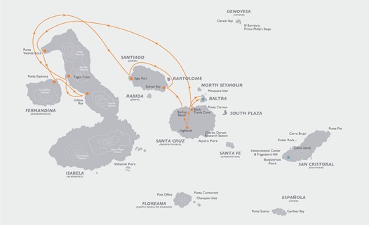 En el primer día a bordo, la tripulación ofrecerá un coctel de bienvenida para dar inicio a la aventura por las Islas Galápagos. Una vez instalados en nuestras cabinas, comenzaremos con dos visitas diarias a las islas, una oportunidad perfecta para descubrir las maravillas de este destino: animales que han logrado adaptarse a terrenos volcánicos y playas de aguas cristalinas, amigables con los visitantes. Disfrutaremos de paisajes de ensueño que muestran la abundante naturaleza de cada isla.