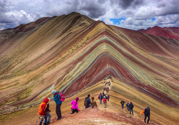 Muy temprano por la mañana lo recogemos de su hotel en la ciudad del Cusco, para luego iniciar la excursión hacia el Sureste de Cusco pasando por Cusipata (3339 msnm.) hasta llegar al caserío de Llactoc, donde apreciaremos manadas de alpacas y llamas y una flora propia de la zona, aquí iniciamos nuestra caminata por aproximadamente 2:30 horas, continuando, apreciamos a lo lejos montañas nevadas y paisajes maravillosos, finalmente llegamos a la montaña de colores (Vinicunca), después de un recorrido y tomas fotográficas en la cima, iniciamos el descenso por 1 ½ horas hasta llegar a Llactoc, para tomar nuestra unidad de transporte y retornar hasta Cusipata donde tendremos un almuerzo (incluido), luego abordamos nuestro transporte y retornamos a Cusco, arribando a la ciudad alrededor de las 17:00 horas. Traslado a su hotel.