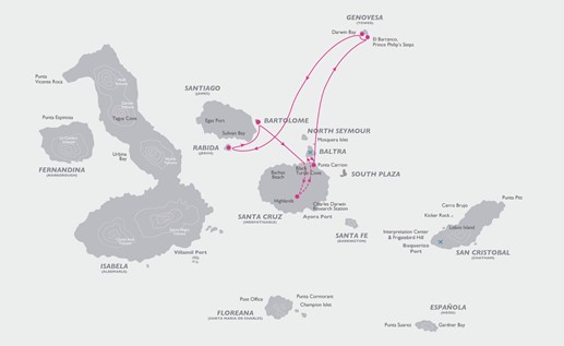 Visitar: Ilha de Baltra | Ilha de Santa Cruz  | Ilha de Genovesa  | Ilha de Rabida |  Ilha de Plazas | Ilha de Seymour North | Ilha de Santa Fe
