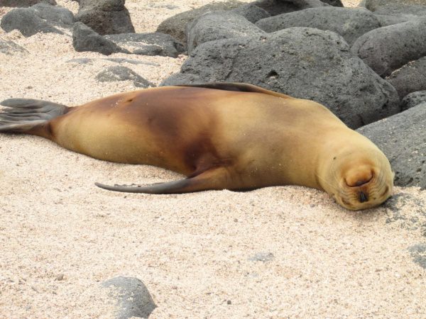 Apesar do seu tamanho, esta ilha abriga uma biodiversidade surpreendente. Realizaremos uma caminhada para observar a maior colônia de leões-marinhos, iguanas terrestres, gaivotas-de-rabos-bifurcados e diversas aves tropicais. O cenário se destaca por seus icônicos bosques de cactos e pelos coloridos “tapetes de Galápagos” (sesuvium), que transformam a paisagem de acordo com a estação.